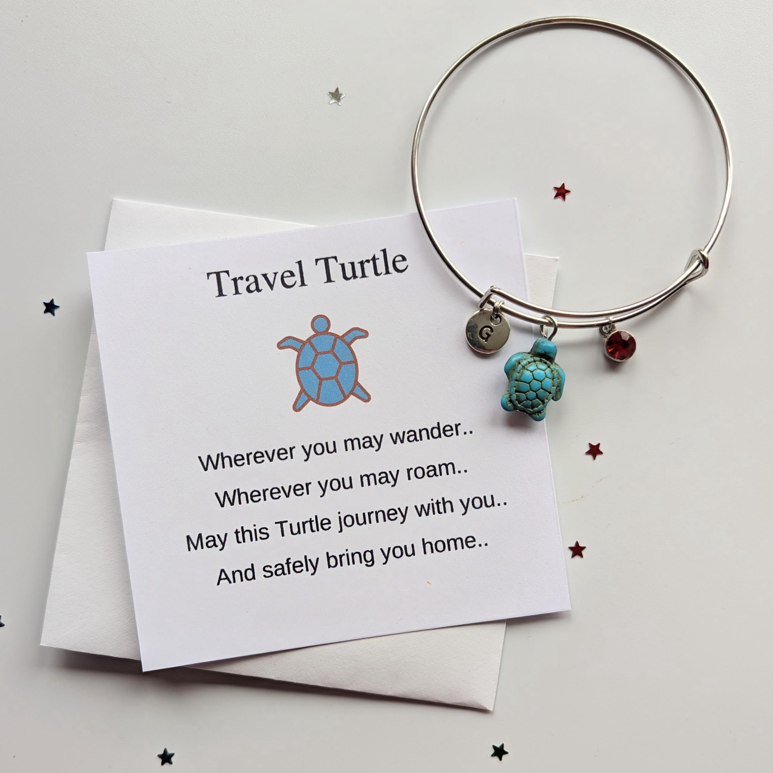 ✨✨This turtle bracelet comes attached to a card with a Travel turtle card and the verse